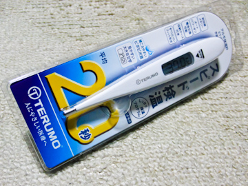 火曜日は朝から調子が悪く、どうやら風邪をひいたみたいだった(>_<) とりあえず薬飲んで寝てたものの、どうも熱っぽいので計ろうと思ったのに、体温計がない・・・・ というわけで、買ってきた。 もっとも、今日はもう直ってしまったので計っても平熱でしたけどね。 買ったのは、テルモのET-C230Pというやつ。 体温計というと、オムロンとテルモが2強みたいですねぇ。 どっちがよいかいろいろリサーチしたもののよくわからず・・・ 概ねテルモの方がよいという意見が多めだったので、こっちにしてみた。 まぁ最近はネットの口コミもあまりあてにはならないんですけどね。 あちこち見て意見を比較しないと、どうも信用できない(^^;) 一番よいのは、どっちも買ってみて自分で比べてみることだけど、わざわざそんなことしたくないし。 このET-C230Pはわきの下用。ほんとは口で計るやつがよかったんだけど、口で計るやつは婦人用のしか見当たらなかった・・・ まぁわきの下用だけど、20秒で計れるからさほど問題ないかな。 でもほんとに20秒で大丈夫なんだろうか? 平熱のときに計ってもあまり参考にならないしねぇ。 以前持っていたわきの下用の体温計は、どんなに熱っぽいと思っても計ると平熱を表示するといういまいち信用できない体温計だったからね。 今度のやつは熱っぽいと感じたときにどんな値が出るか楽しみだ(^^;)